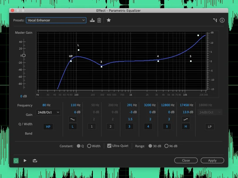 For the most part, for the work we are doing on improving podcast quality, you can use graphic, parametric, or any of the hybrids in most recording and editing software. Honestly, for podcasting, I have a graphic equalizer set up as a preset that I use for nearly every episode. That helps me sound the same from episode to episode. For voiceover work, I tend to rely on the parametric EQ. I have a preset for that as well for delivering that studio-grade sound.